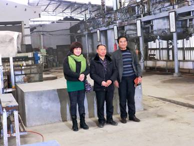 圖為李總(中)、汪站長 (右)、周琴(左)在公司改良劑生產(chǎn)車間合影
