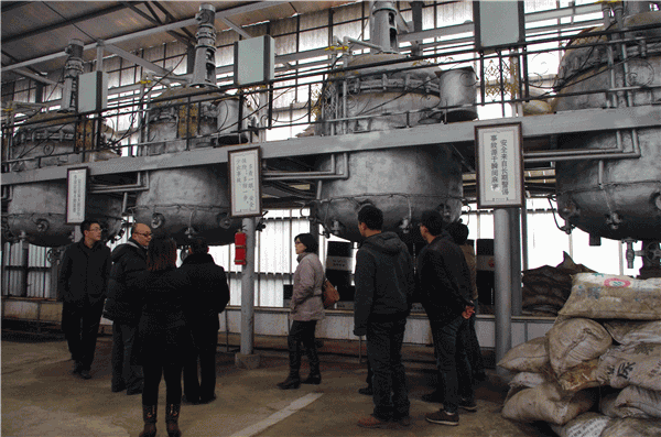 圖7:與會(huì)者在參觀(guān)華宏農(nóng)科的改良劑生產(chǎn)車(chē)間