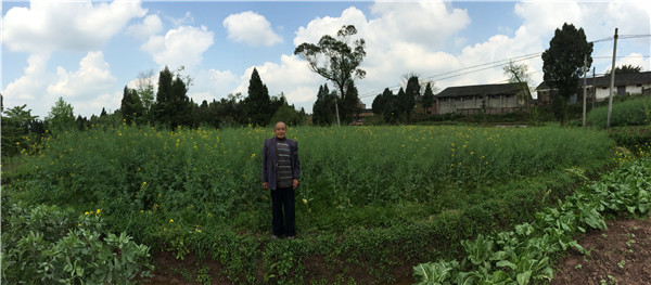 圖為:姚永訓(xùn)站在自己另一塊油菜地里