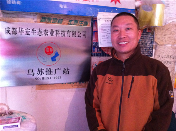 圖為成都華宏生態(tài)農(nóng)業(yè)科技有限公司烏蘇推廣站站長(zhǎng)劉軍