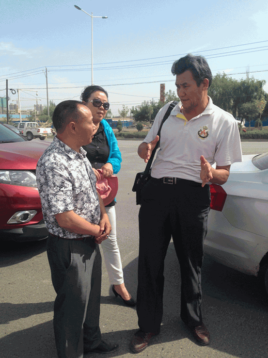 圖為:維族教授艾買爾江在向李總介紹項目實施情況,并說你們的”施地佳“土壤調(diào)理劑應(yīng)用效果很好