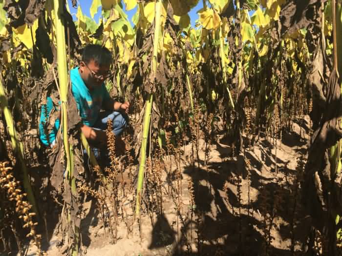 圖2:內蒙古五原縣食葵列當危害使食葵顆粒無收