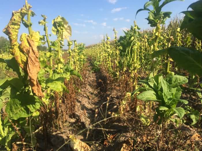 圖4:吉林省鎮(zhèn)賚縣煙草列當危害嚴重,這個煙葉畝產不足300斤,且次品煙葉占50%。