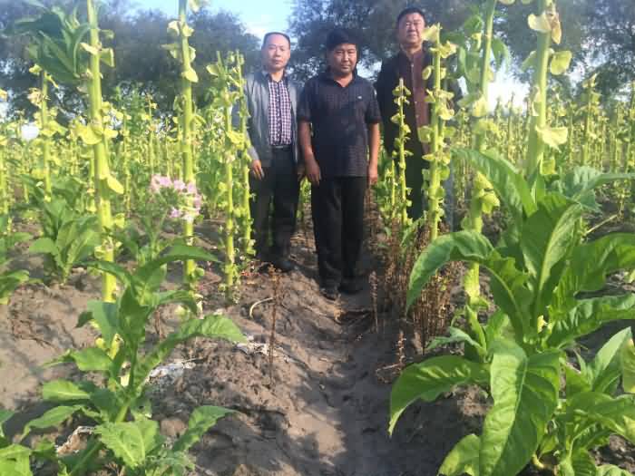 圖5:吉林省鎮(zhèn)賚縣煙草種植大戶在煙草列當防治試驗田說,今年的煙葉是最好的,畝產400斤不是問題