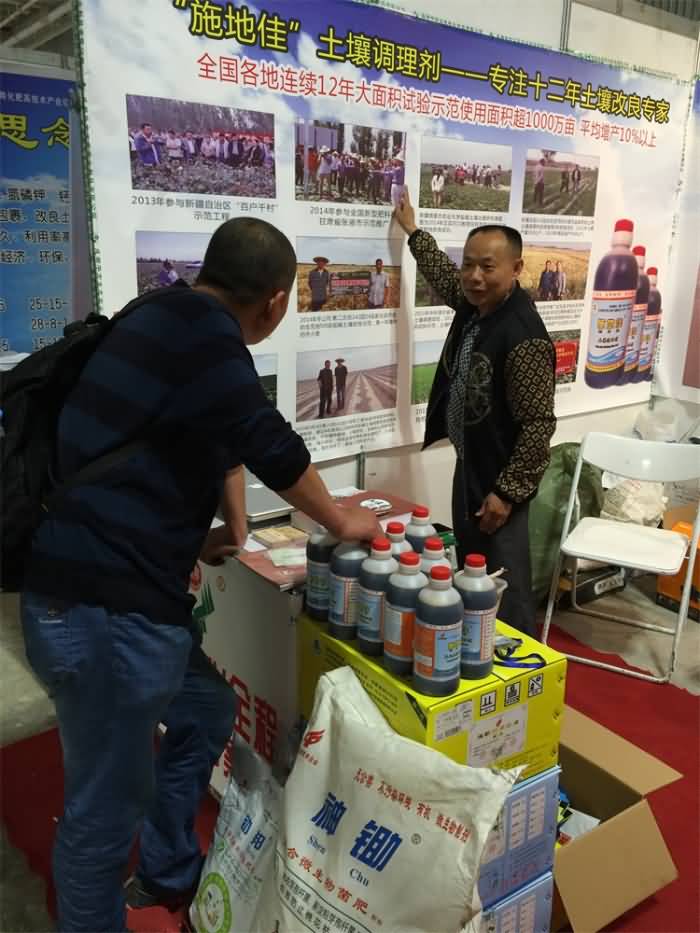參加這次農(nóng)業(yè)博覽會的有廠商、經(jīng)銷商、種植大戶、專業(yè)合作社,參展的產(chǎn)品有:化肥、農(nóng)藥、除草劑、土壤調(diào)理劑、微生物制劑,還有各種農(nóng)業(yè)機械,他們來自各省、自治區(qū)、直轄市。成都華宏生態(tài)農(nóng)業(yè)科技有限公司參展的產(chǎn)品有:水肥一體化全程方案、“施地佳”土壤調(diào)理劑、“神鋤”復合微生物菌肥、“助邦”氨基酸植物營養(yǎng)液、高純磷酸二氫鉀、大量元素水溶肥料、各種單質(zhì)微量元素肥,引來眾多觀眾的圍觀和咨詢。