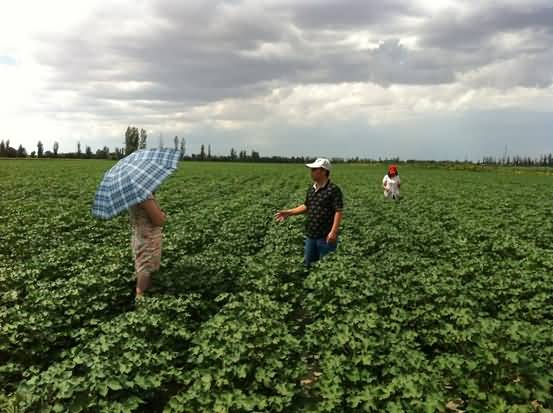 成都華宏生態(tài)農(nóng)業(yè)科技有限公司將示范田的地點選在了第八師121團13連職工雷秀英的同一塊棉田(面積80004m²),這一地區(qū)位于天山以北,光照充足,熱量豐富,屬典型灌溉農(nóng)業(yè)區(qū),為灌耕灰漠土。供試地連續(xù)種植棉花26年以上,2013年該棉田枯黃萎病平均發(fā)病率為29%,其中局部棉花高達71%——可以說,是一塊非常具有代表性的“樣本對比試驗田”。