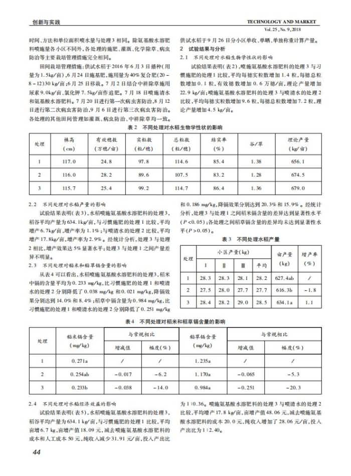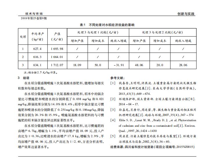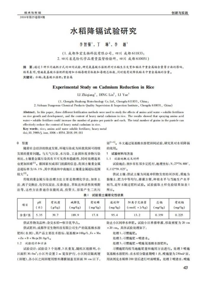 《技術(shù)與市場(chǎng)》2018年 第9期 水稻降鎘試驗(yàn)研究